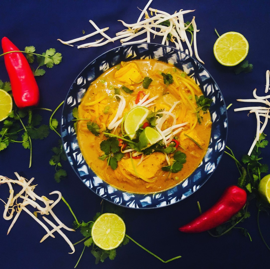 This scrummy chicken laksa is a perfect weeknight evening meal and very versatile! There is an Asian fusion restaurant down the road from my work and my most recent visit has been with my team to celebrate a birthday over lunch! That’s also where I first tasted a laksa. The thing I love about laksa